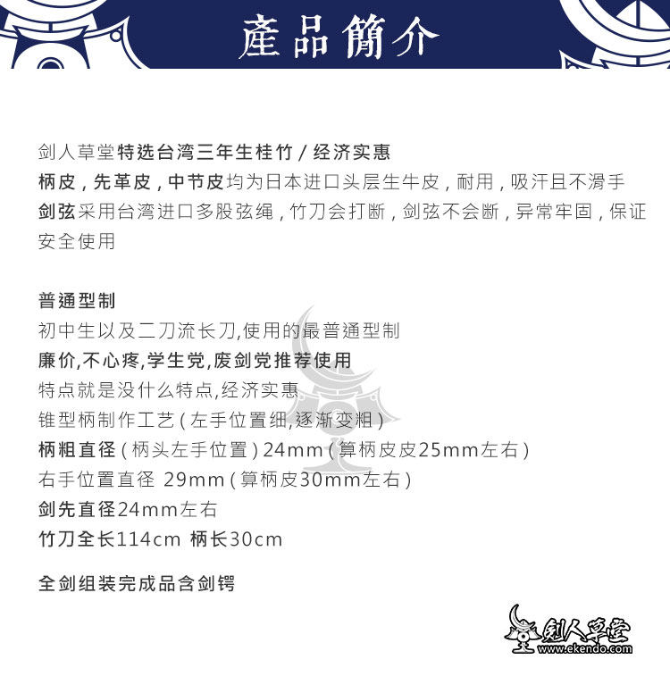 Продавец:【剑人草堂】厂家直销 剑道装备 剑道护具防具 剑道服装 竹剑木刀