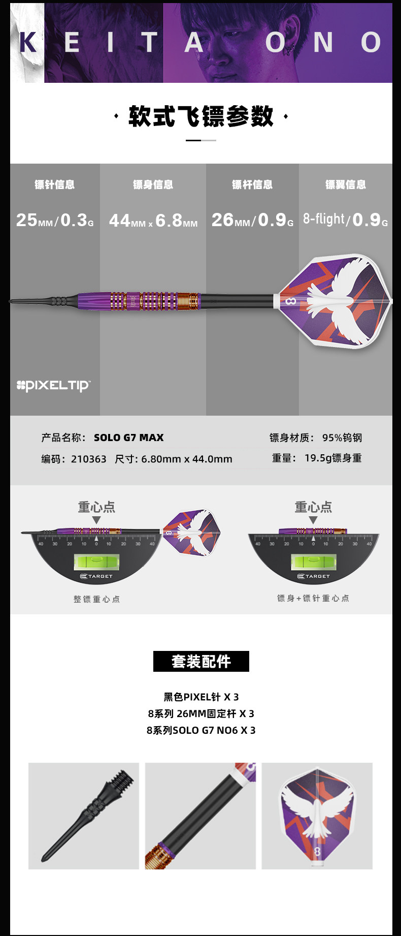 TARGET Keita Ono Keita 19.5g Solo7 Generation G7 Max Soft 95 вольфрамовый стальной дротик