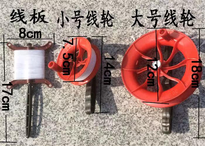 Большой провод: длина ручки составляет 18 см. Диаметр колеса составляет 12 см. длина линии 40 метров  120/коробка