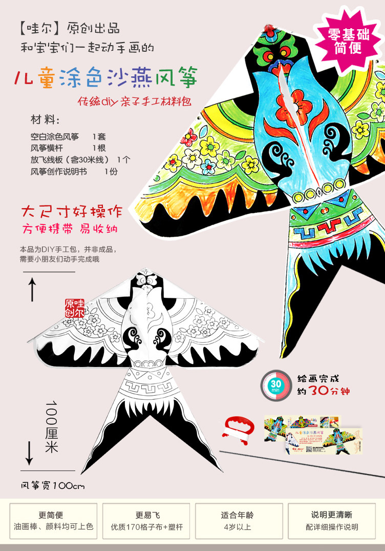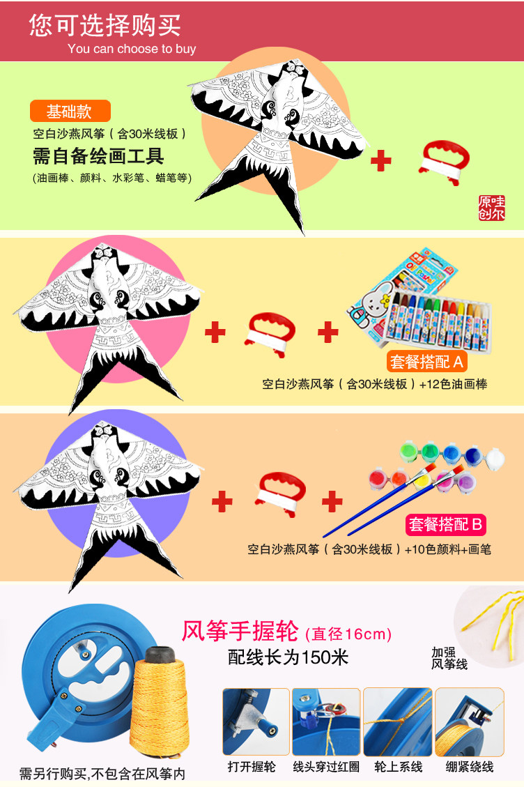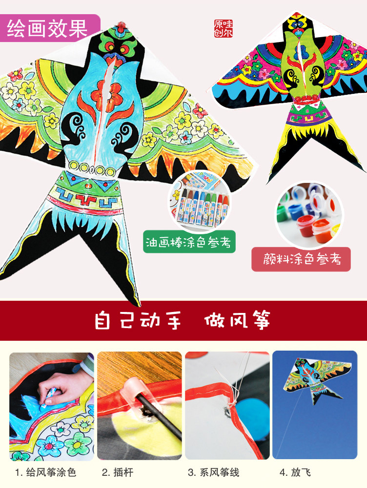 Воздушный змей, набор материалов для школьников, мультяшная небольшая сумка, DIY, обучение, ручная роспись, граффити