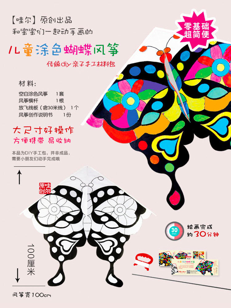 Белый воздушный змей, набор материалов для школьников, небольшая сумка с бабочкой, DIY, обучение, граффити