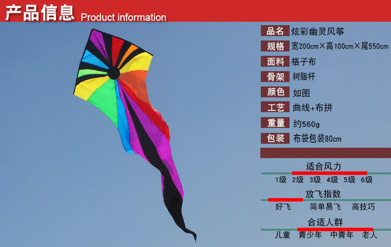 | Цвет: | Belly -Colroced Ghost Kite, Белый призрачный воздушный змей |