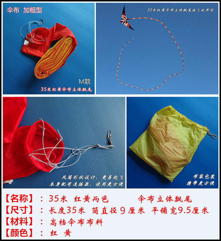 - M Модель 35 -метровая красная желтая зонтичная ткань Трехмерная трепетание хвоста