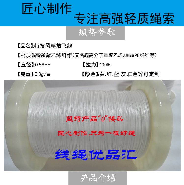 Еще одна специальная линия воздушных змеев со спецификациями диаметра растягивания и диаметром провода, четырехслойными продуктами для кайт -линейки, при необходимости, спросите обслуживание клиентов.