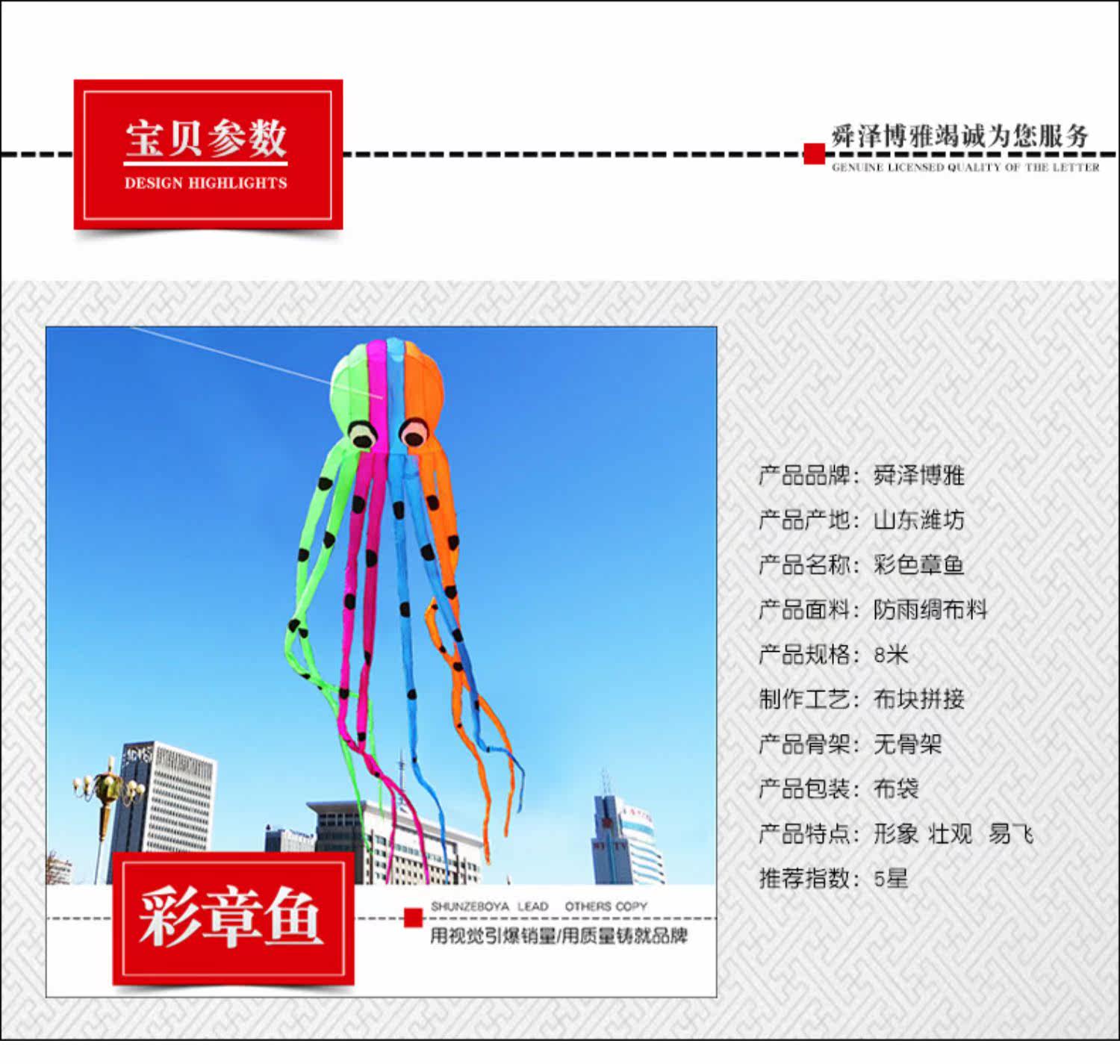 Weifang крупный кайт Red Yang Software Kite Kite 8M Tube Octopus Octopus Cake Kiste Circuit T136