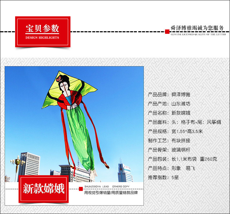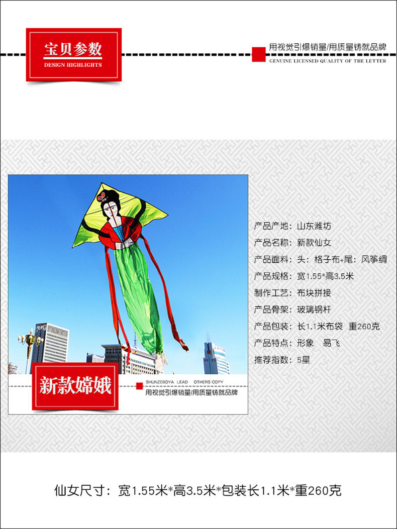 2023 Новая Fairy Beauty Chang'e Plof Baste Большой взрослый для взрослой хвостовой новичок Flying Kaifella Kite Circuit