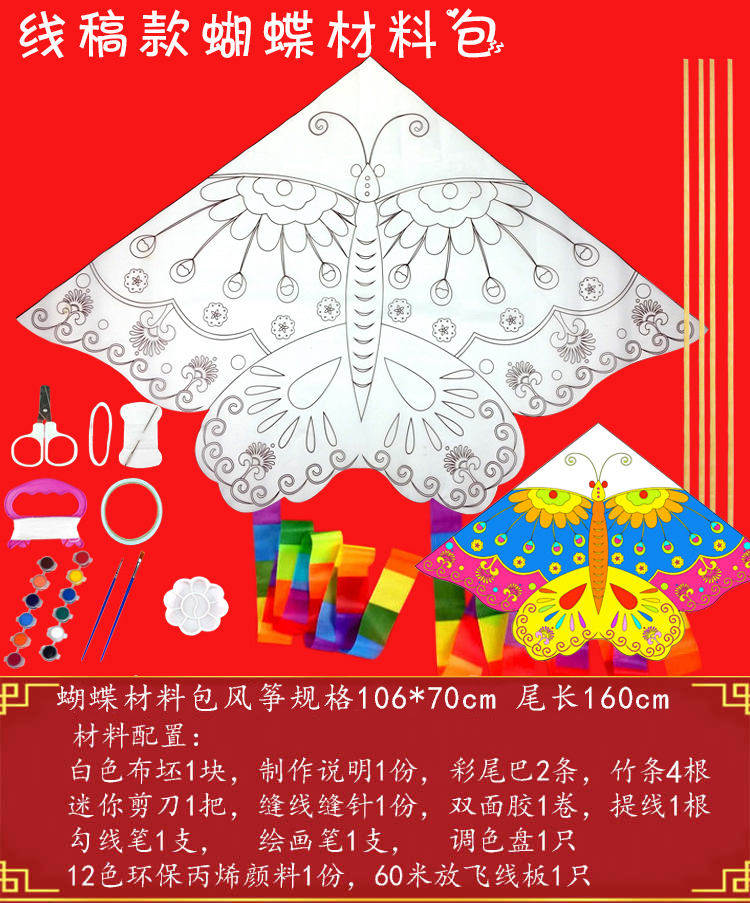 Воздушный змей, набор материалов, барсетка, раскраска, DIY, обучение
