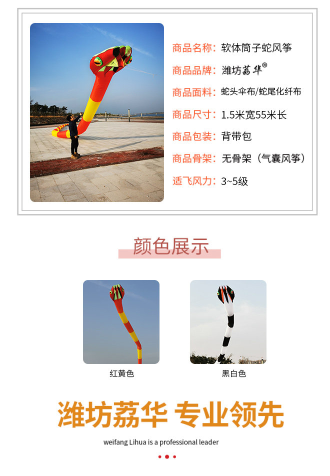 55 -метровое программное цилиндровое змея Weifang Lihua Software Kite Kite Kite Software без скелета