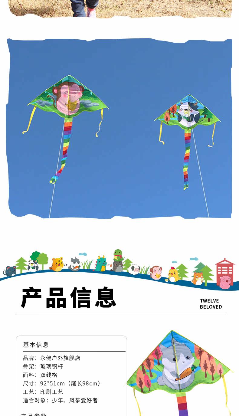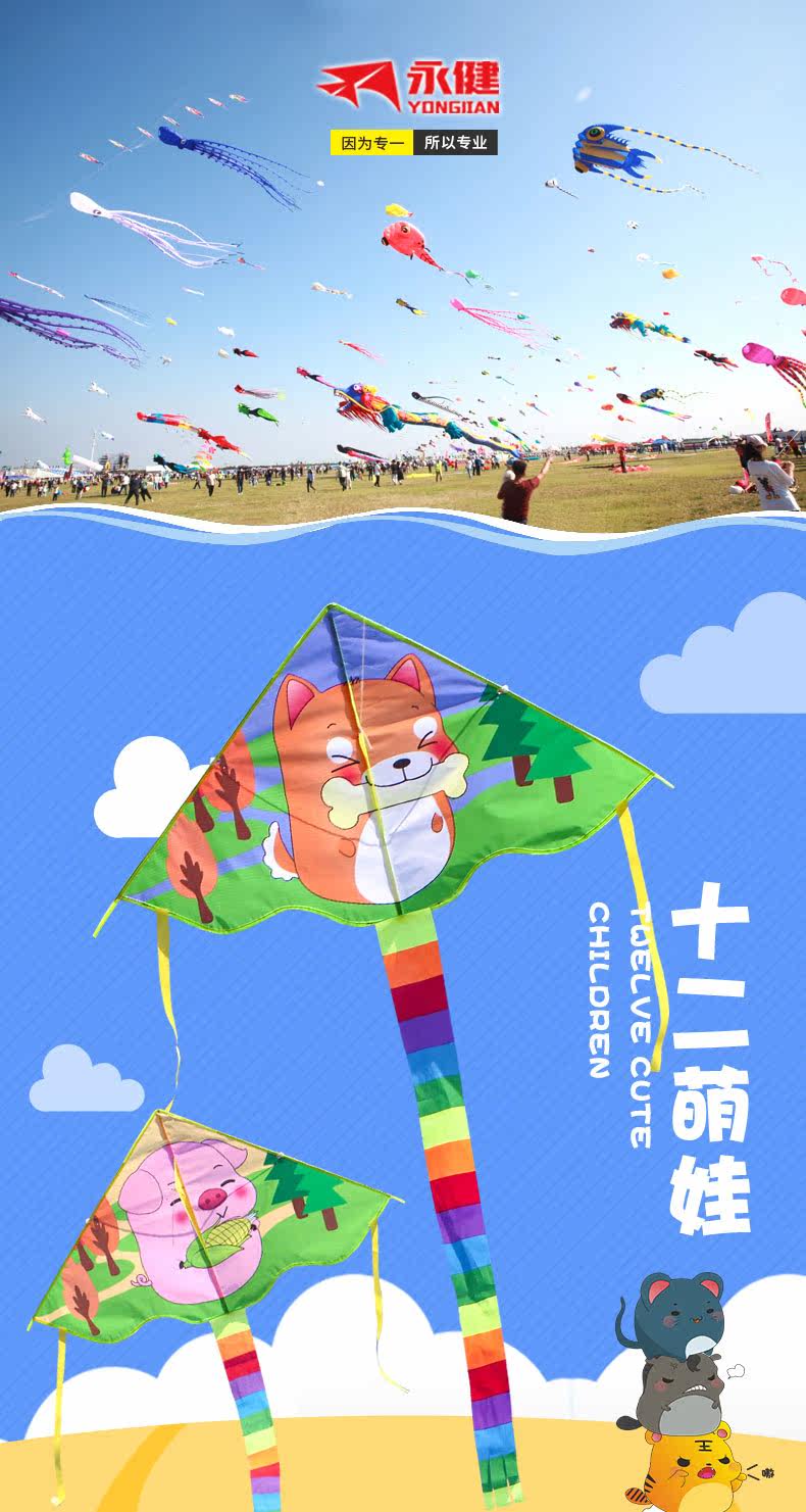 Маленький мультяшный воздушный змей для мальчиков и девочек, китайский гороскоп, прямые продажи с завода