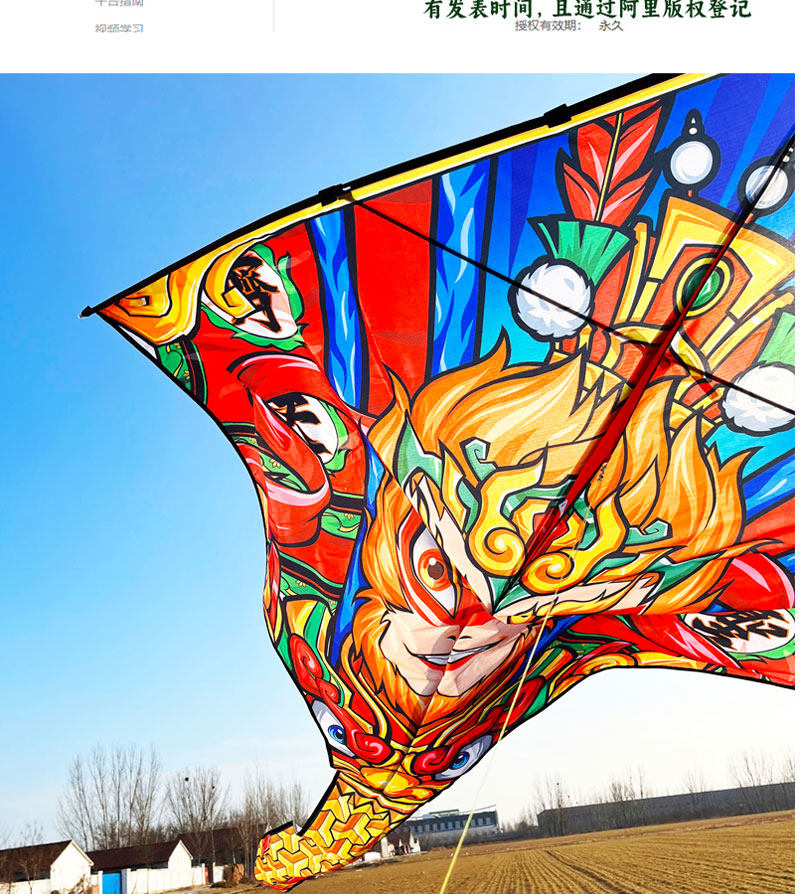 Qitian Great Saint Kite Sun Wukong 2024 Новый крупный масштаб Weifang Triangle воздушный змей длинный хвост с высоким содержанием взрослых детей легко