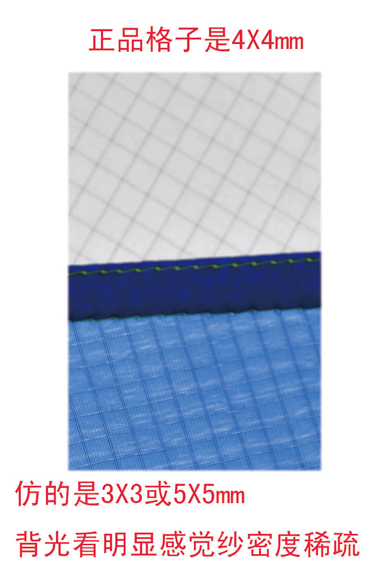 [第三辨别方法:看布纹格子,]544[是]4X4mm[,民用是]3x3mm[或]5X5mm[。]