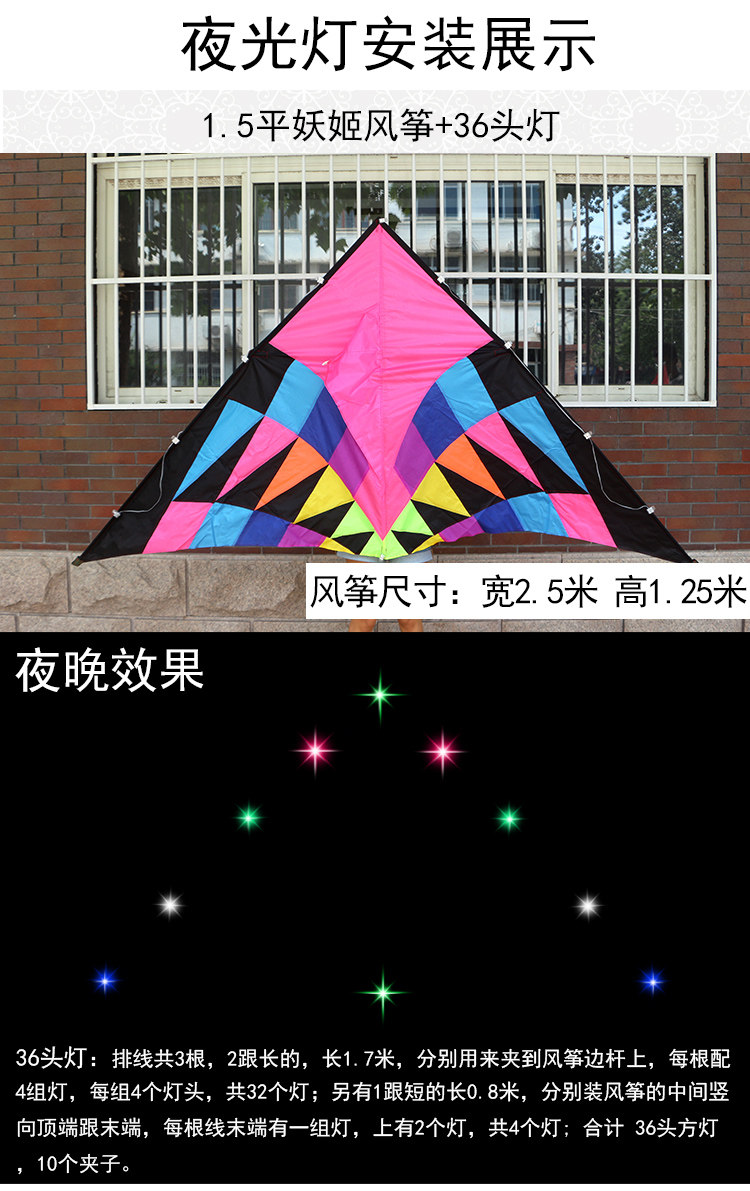 Ночная -Рейк -кайт Weifang Kite Super яркая пища русалка светодиодная боковая свет 20/28/36/48/56 Зажигание на основе повязки