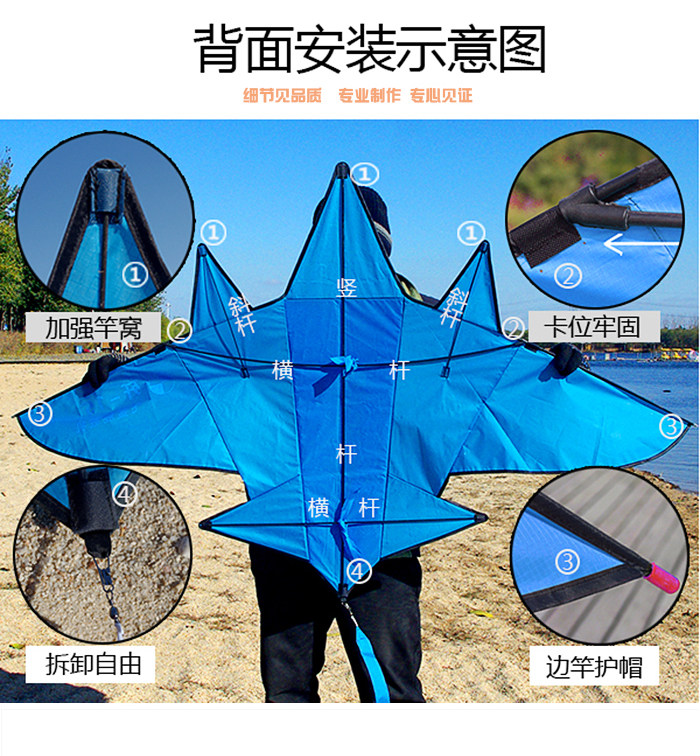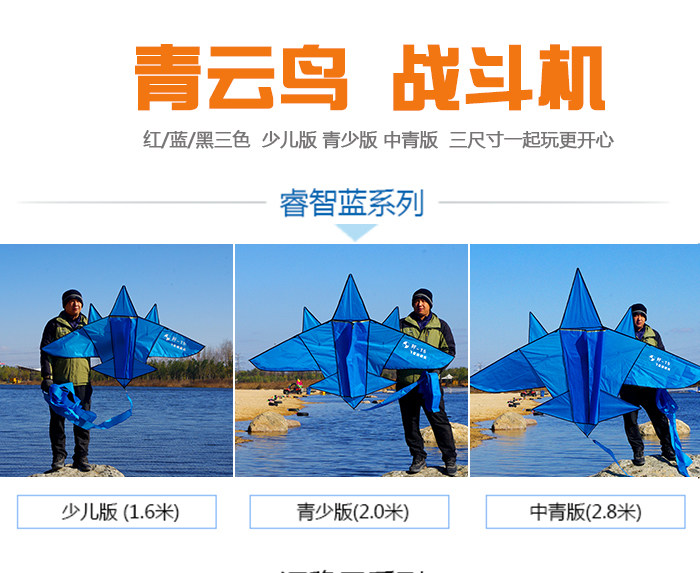Blue Cloud Bird Fighter Plus хвост Easy Flying Kite Wheel Детский самолет для взрослых Anti -Breeze Weifang Бесплатная доставка
