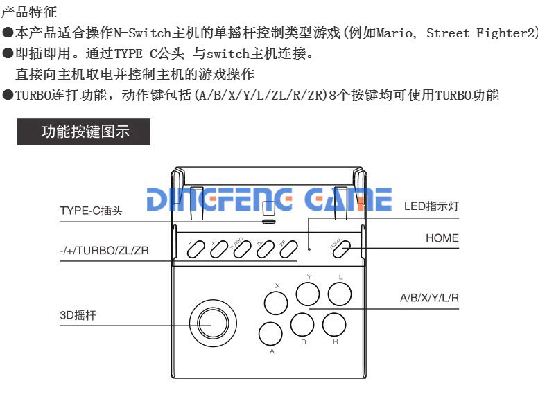 1. Этот продукт подходит для эксплуатации игры в одном типе управления джойстика в хосте N Switch (например, серия Mario, Street Fighter2 и т. Д.);