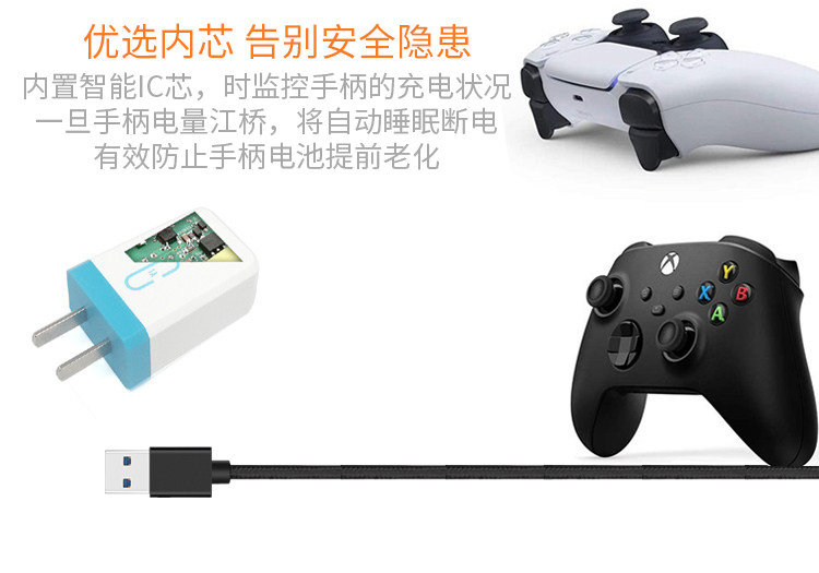 PS5 Xbox Series X Беспроводная ручка контроллера тканого порта Type-C Кабель 3M подключение 3M подключение