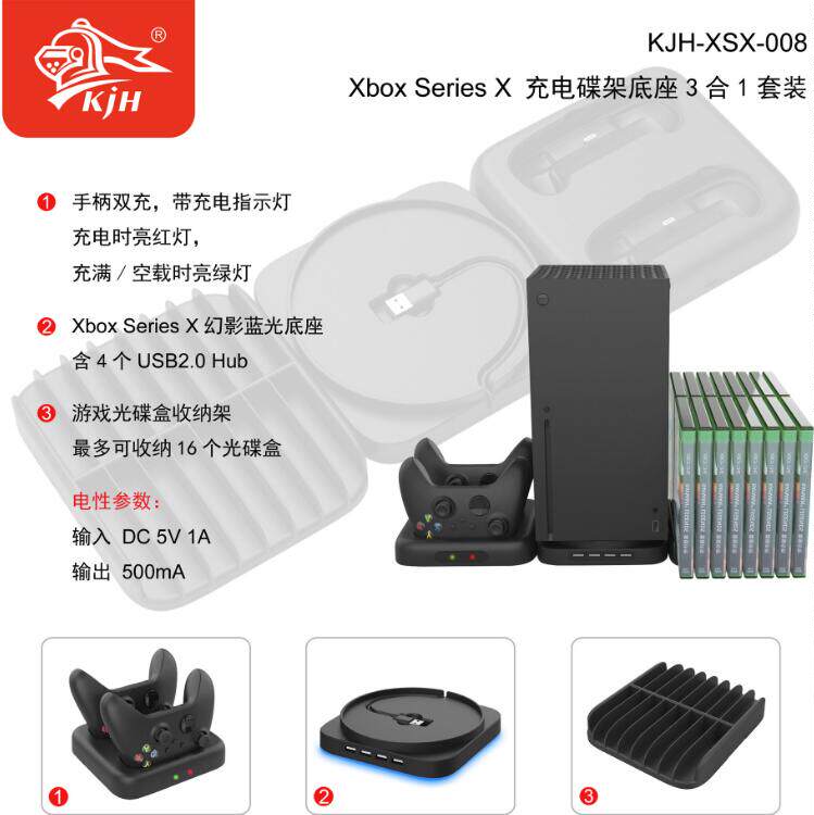 Xbox series x база хоста+зарядка сиденья зарядка+игровой набор для хранения компакт -дисков тройной набор