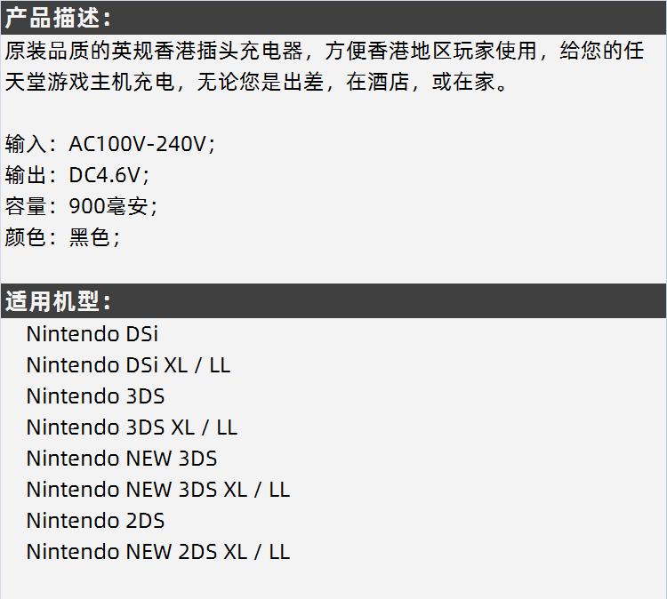 Применимо Nintendo New Da Sanchang Electric Newsxl DSI Fire Cow Electric Adapter к Британскому стандарту в Гонконге