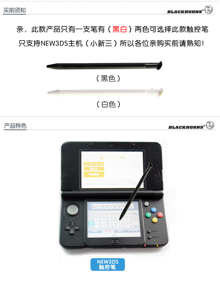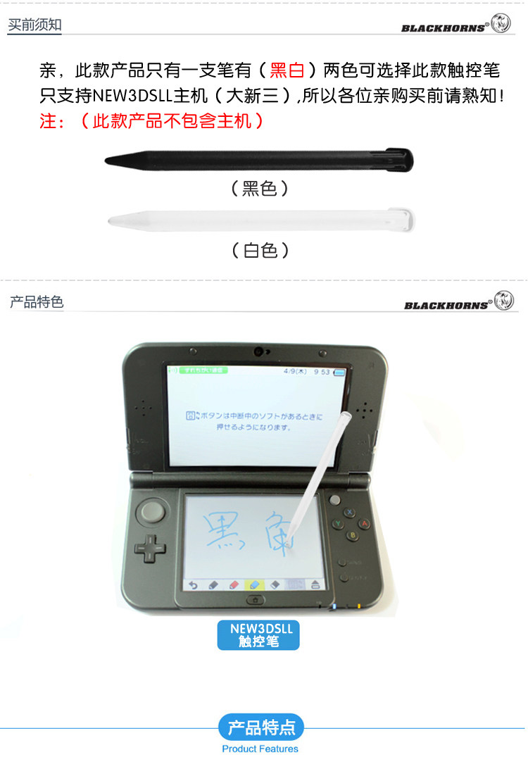 Черно -хорн Nintendo Game Machine аксессуары New3dsll Touch Pen 3ds.