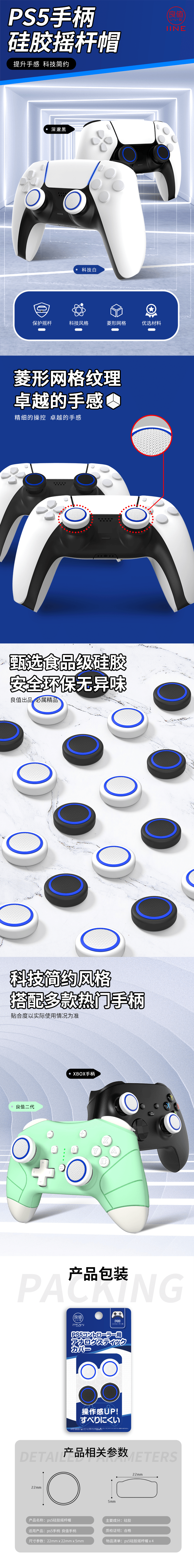 Хорошее ценность (IINE) подходит для PS5/Xbox Series XS, чтобы увеличить кепки джойстика в крышке джойстика