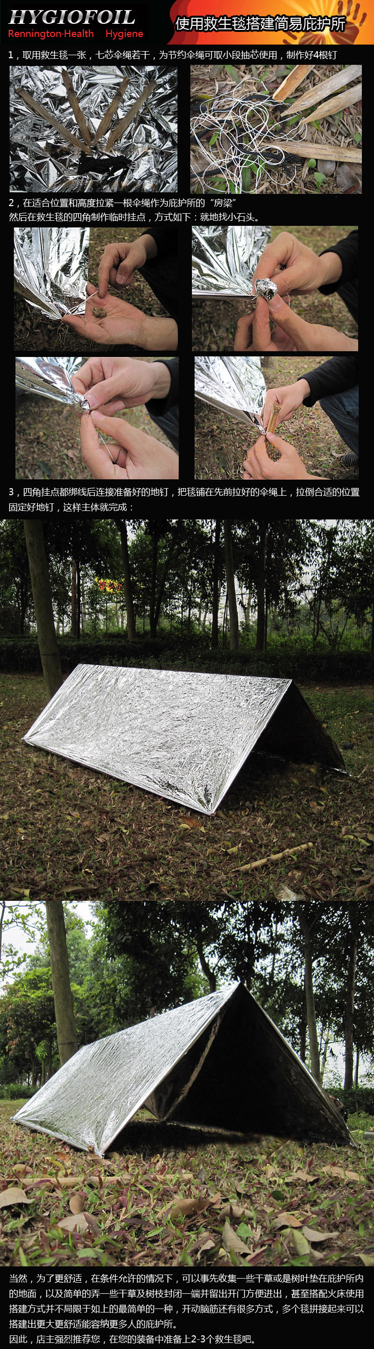4. В дождливые дни одеяла первой помощи можно использовать в качестве дождливого понха; могут быть открыты как рельсы;