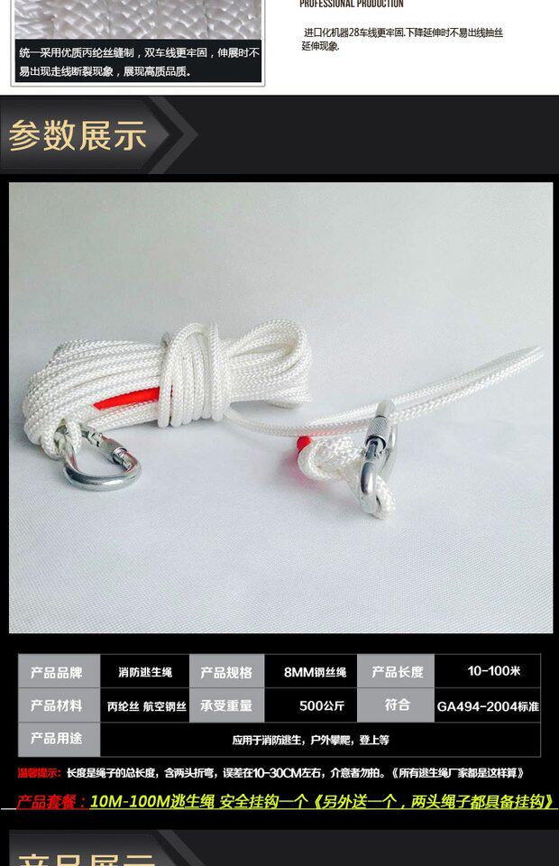 8 мм нейлоновый пожарный спасенный веревка Пожарная веревка Веревка Внутренняя стальная проволока Пользователь иностранного срока службы, профилактика пожара, бесплатная доставка.