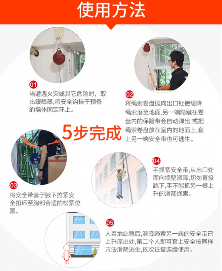 Высоко -рис -обратный дом многопользовательский устройства Пожарной Пожар -сжимая высокая стальная проволока сжимание веревки высокой скорости высокого уровня.