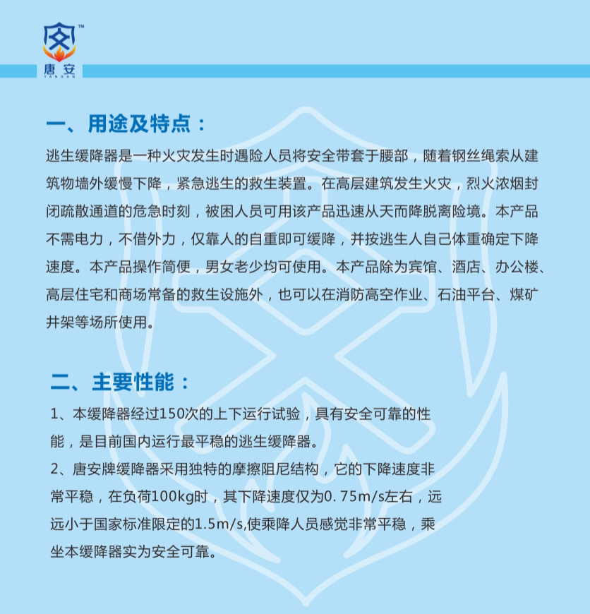 Устройство замедления является экономическим и практическим самооценкой, обеспечивающей жизнь или безопасность для спасения для отелей, офисных зданий, торговых центров, банков, больниц, почты и телекоммуникаций, энергетики, общественных развлечений и дома.