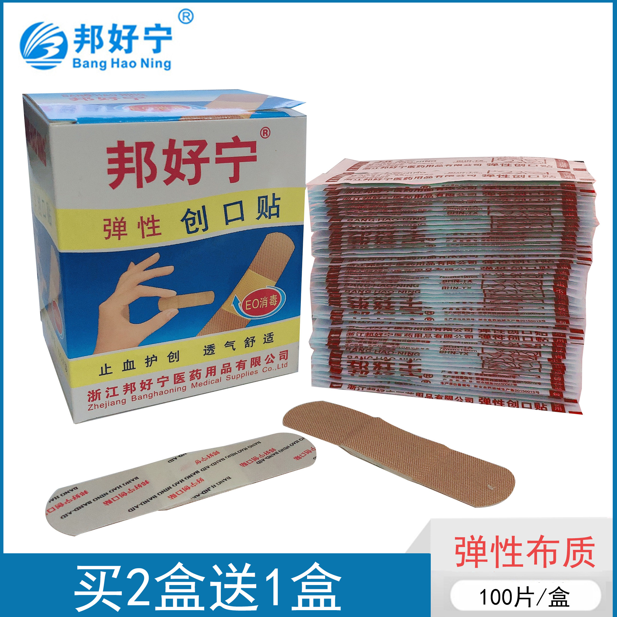 Эластичный лейкопластырь, износостойкая дышащая ткань, 100 штук