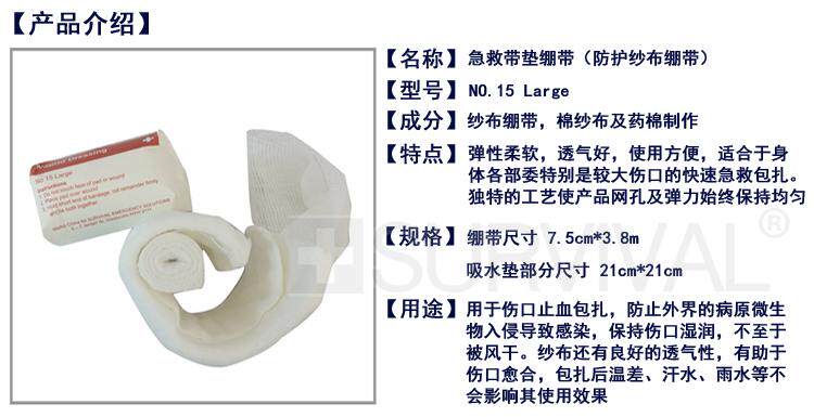 Выживание выживаемого № 15 имеет одноразовую гемостатическую повязку экспорта на открытом воздухе.