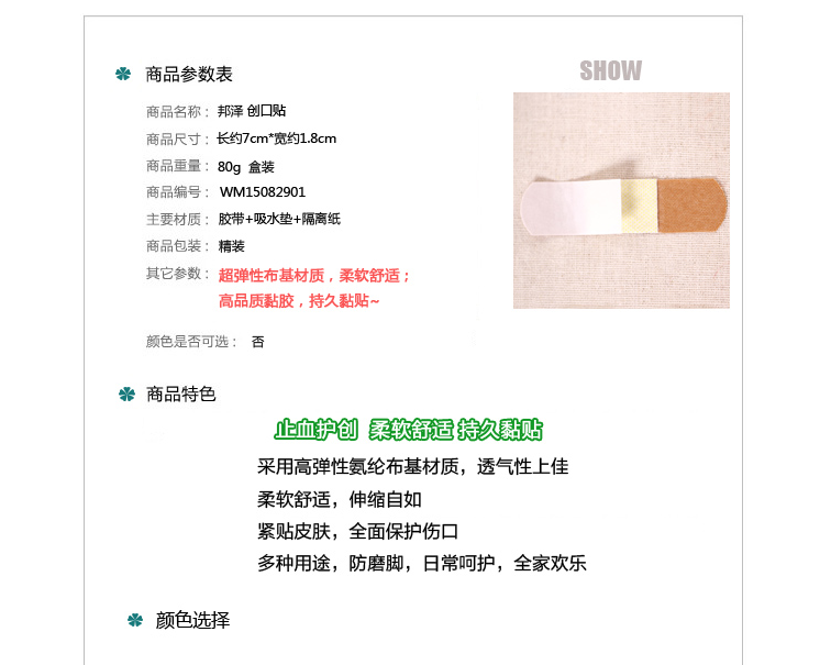 邦泽 Эластичный дышащий антибактериальный лейкопластырь, износостойкие напяточники, 100 штук