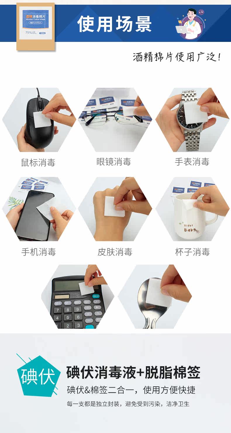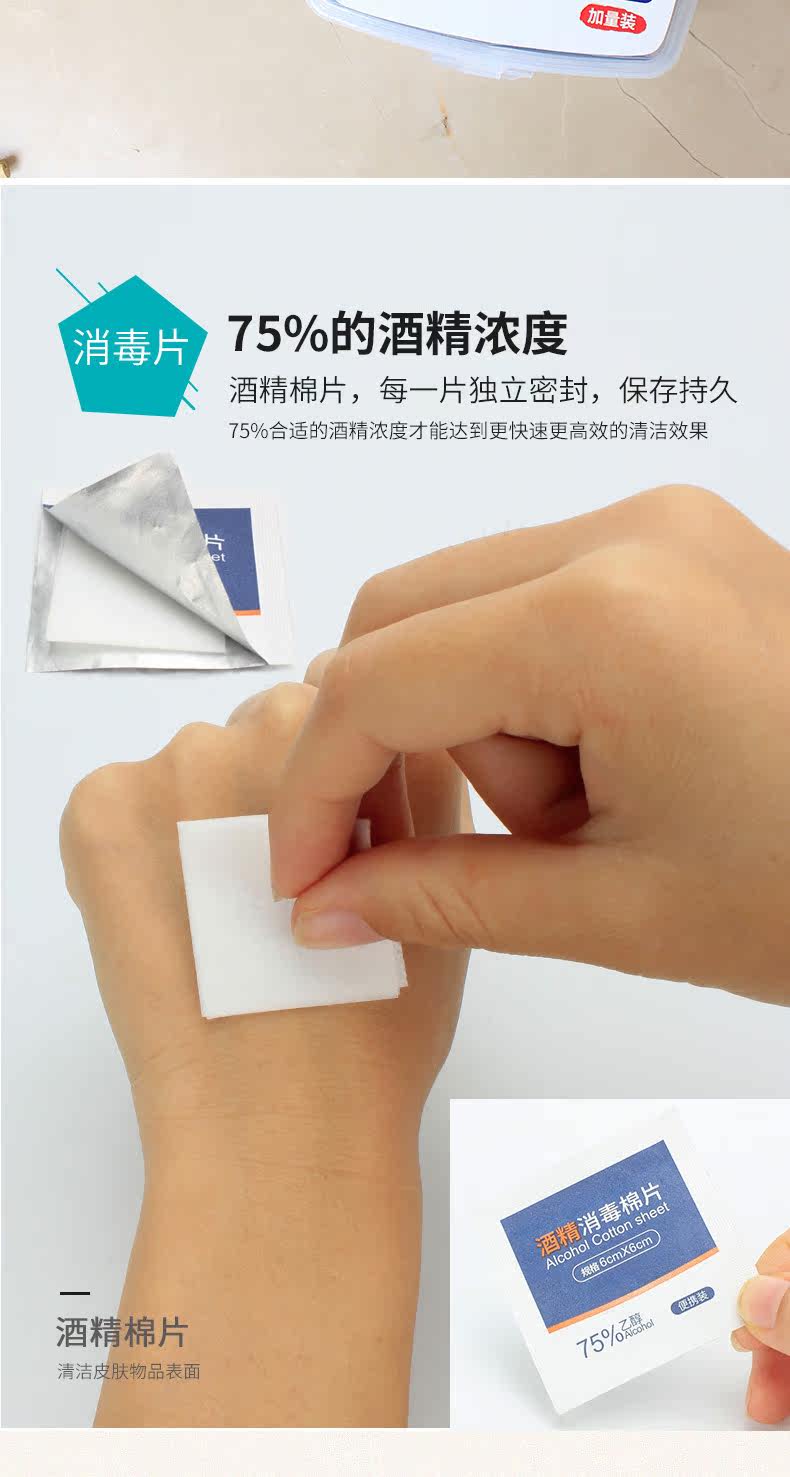 Одноразовые ватные диски, портативная упаковка, антибактериальный мобильный телефон, большие ватные палочки, 75 градусов, 100 штук