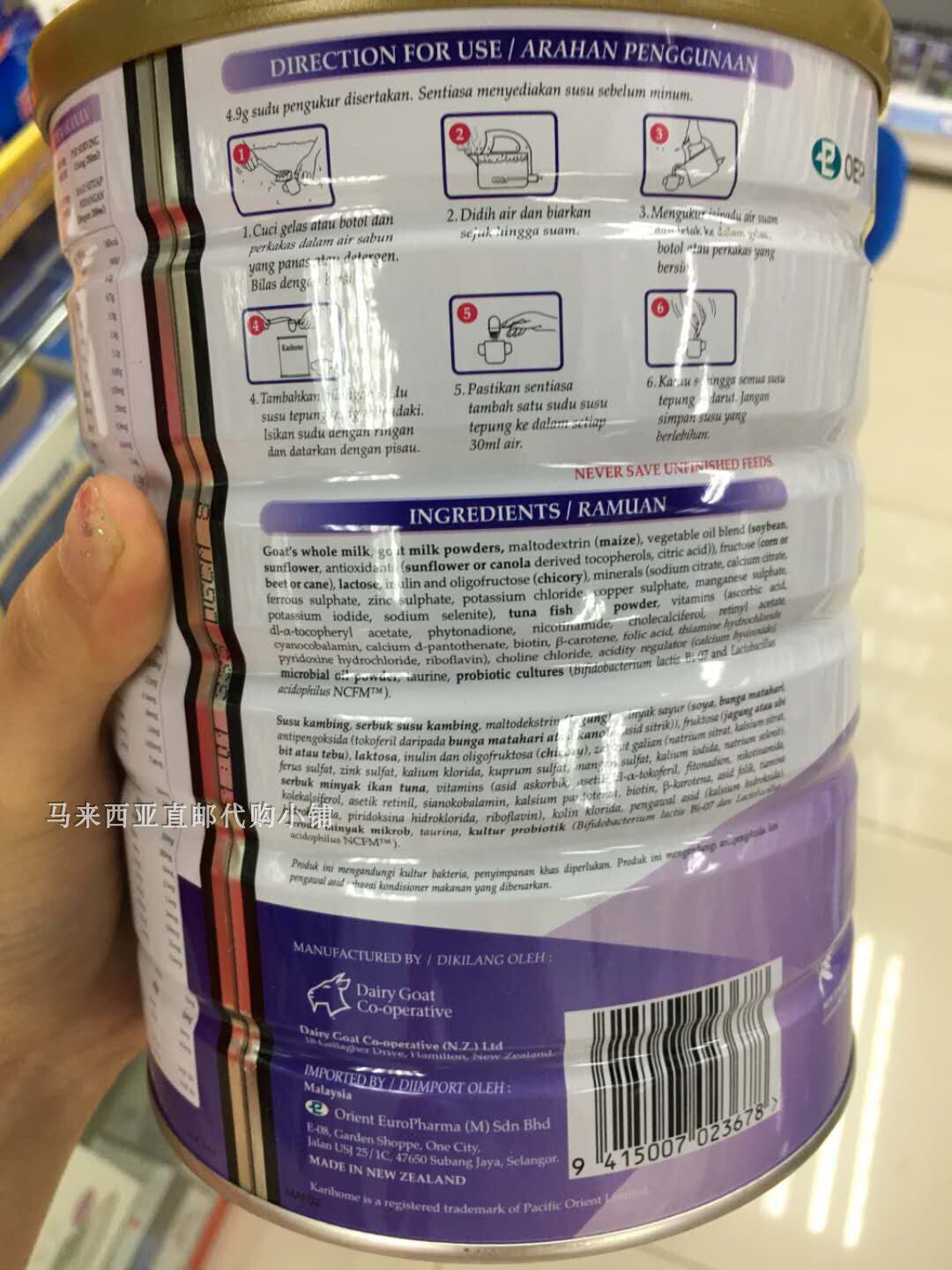 Прямые покупки из Малайзии, Новая Зеландия. Сухое козье молоко Karihome, 4 секции, 900 г.