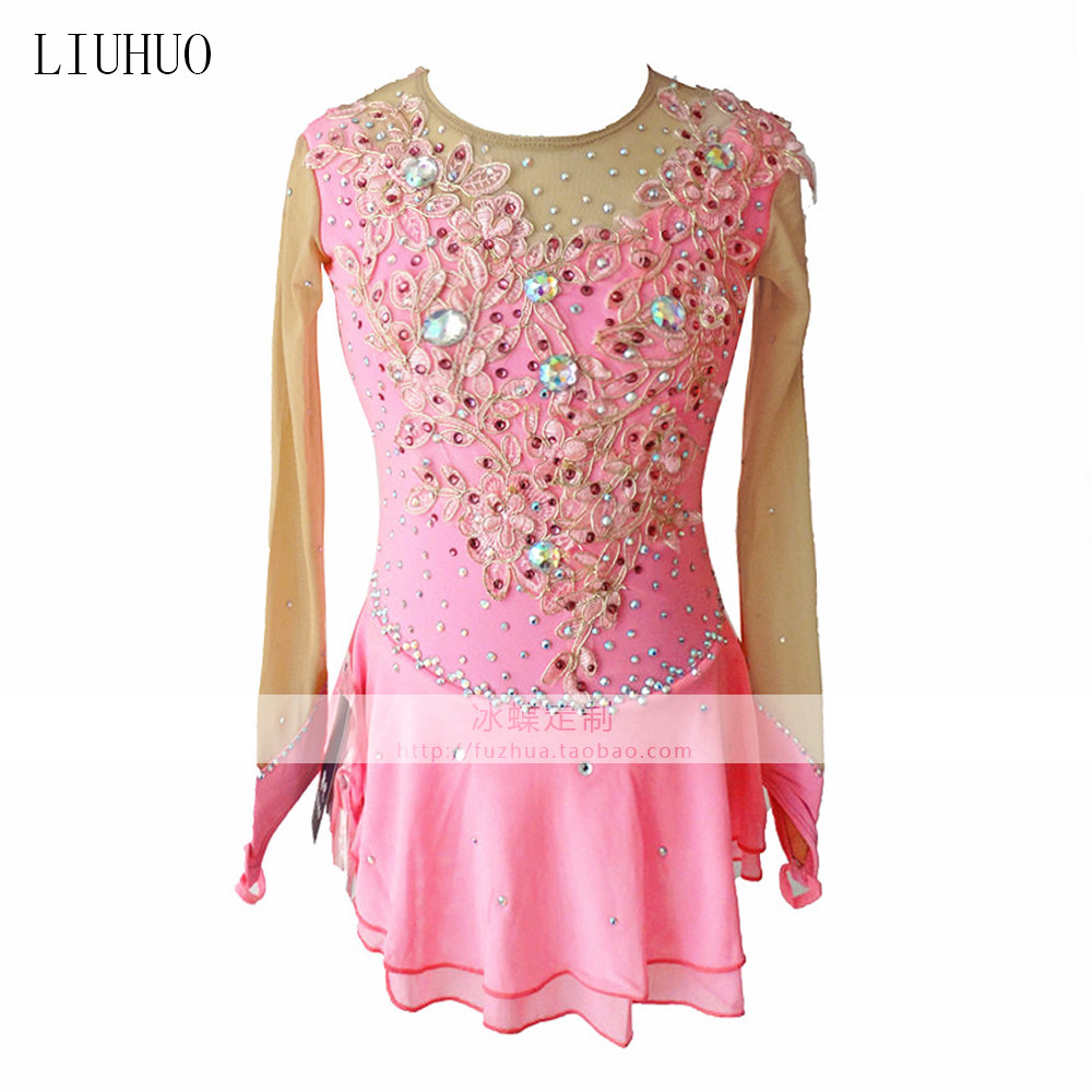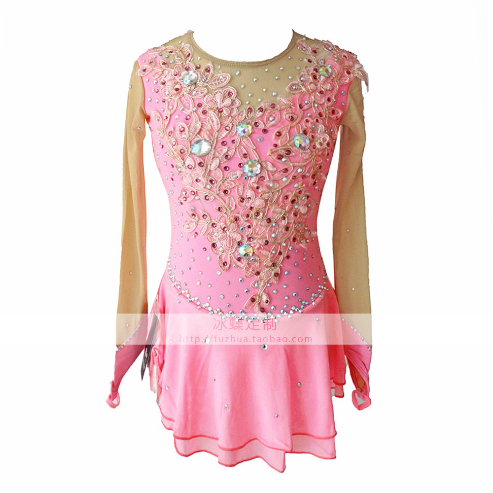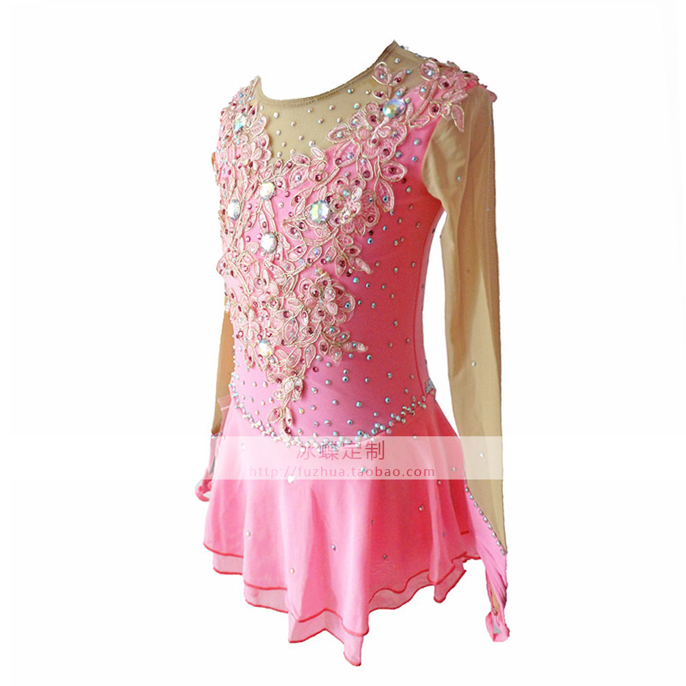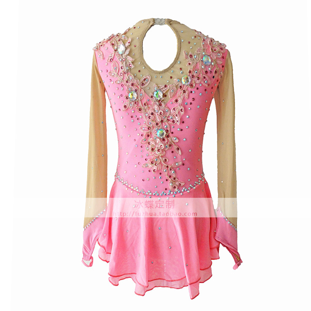 Детские коньки, гимнастический розовый костюм, фигурное катание