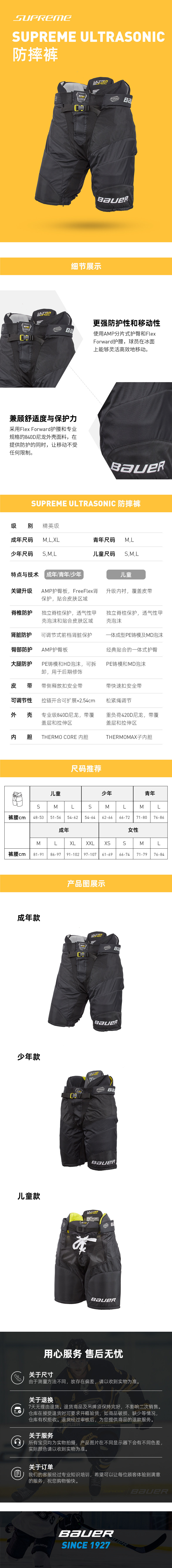 Bauer 趵 Supreme Ultrasonic Anti -Pants Hockey Equiption Gear