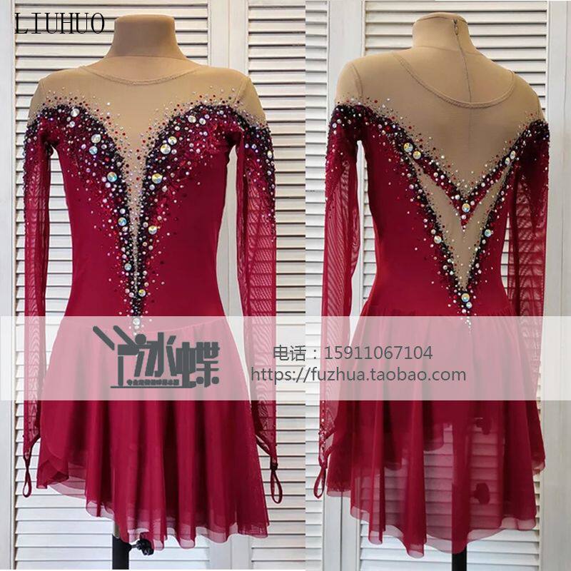 Liuhuo Pattern Skating Performance Clothing, индивидуальная детская одежда для производительности черная и красная BD1500