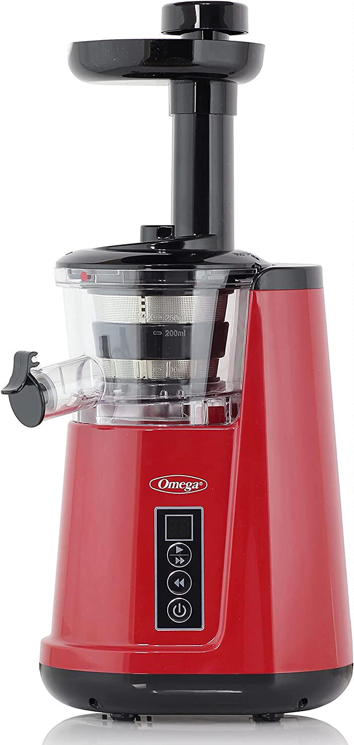 Омега соковыжигатель холодный пресс 365 Вертикальный медленное сжимающее экстрактор для фруктов и овощей, без BPA, 65 об / мин, 150-ватт, красный