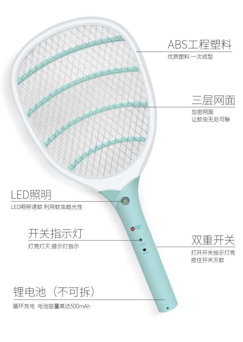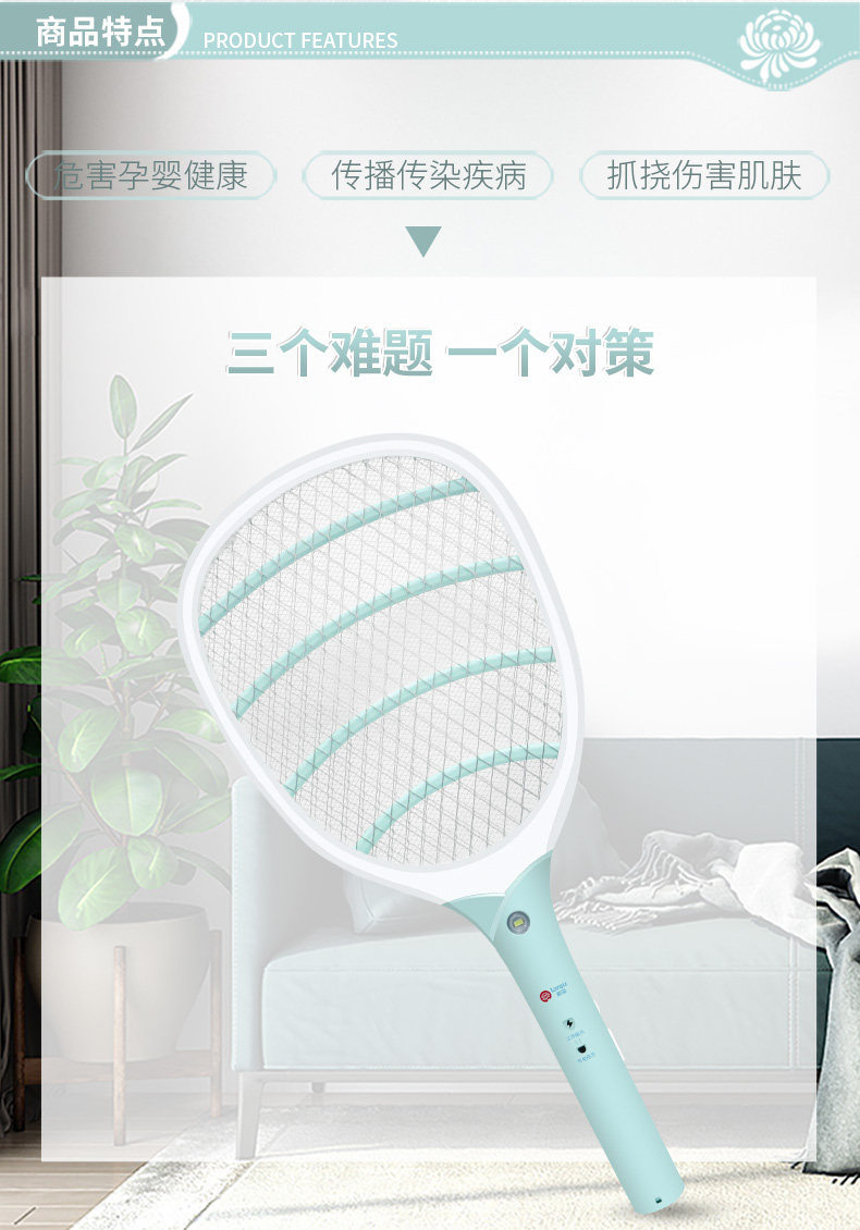 榄菊 Перезаряжаемая электрическая мухобойка от комаров с зарядкой для домашнего использования, мощное электронное средство от комаров