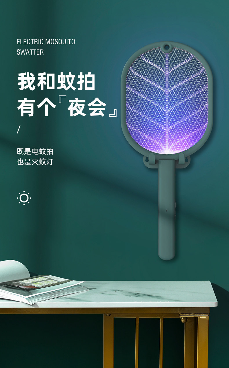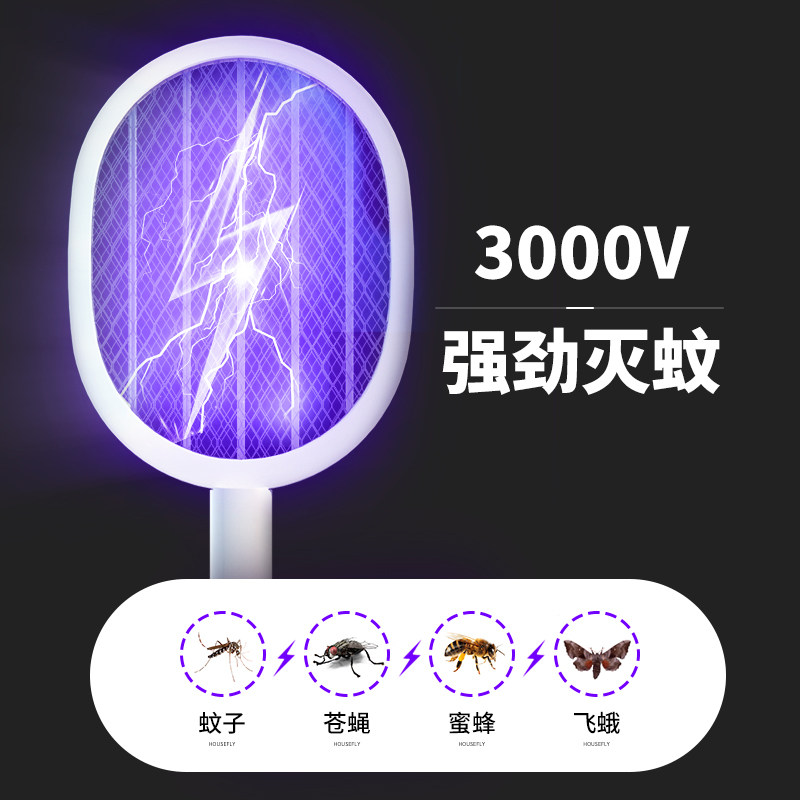 Маленькая умная электрическая мухобойка от комаров, литиевые батарейки для домашнего использования с зарядкой, «три в одном»