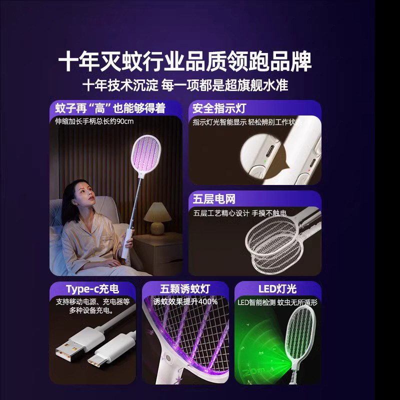 Перезаряжаемая электрическая мухобойка от комаров с зарядкой, мощная автоматическая ловушка для комаров для домашнего использования, средство от комаров