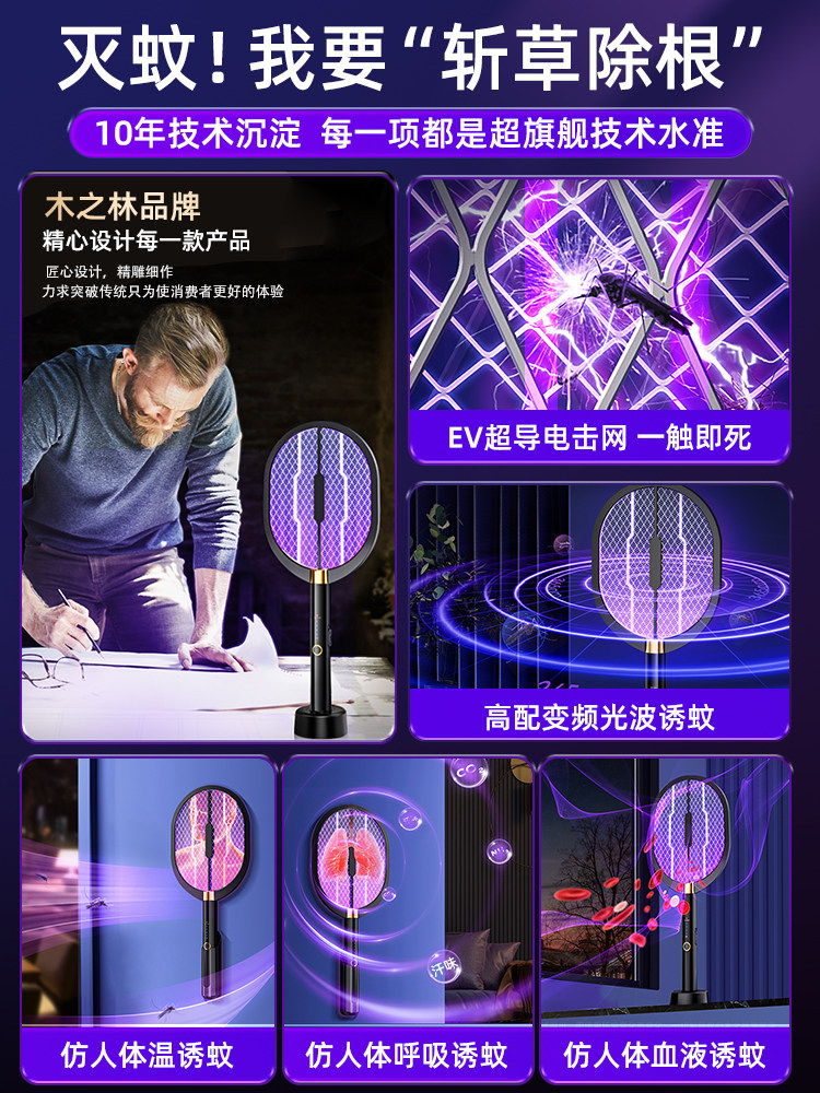 Перезаряжаемая электрическая мухобойка от комаров с зарядкой, литиевые батарейки для домашнего использования, мощное средство от комаров, москитная лампа, новая коллекция, 2 в 1