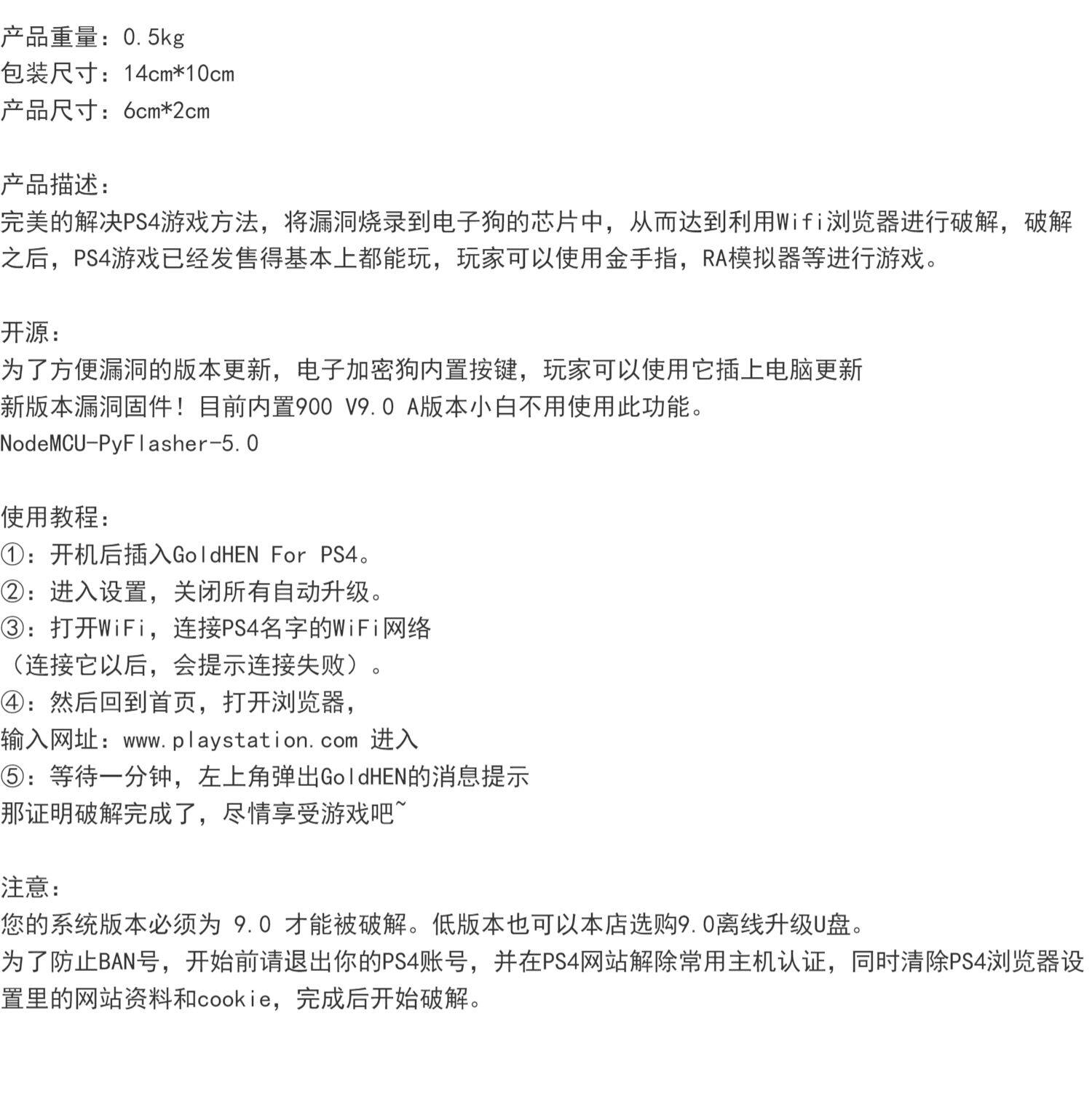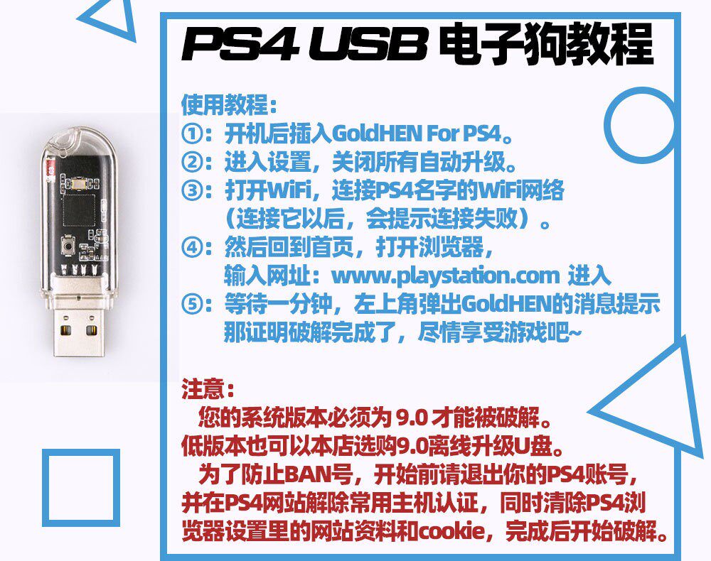 PS4 9.0 Wi -Fi Free Plug -IN USB Electronic Dog Dog Device One -click Crack ESP32