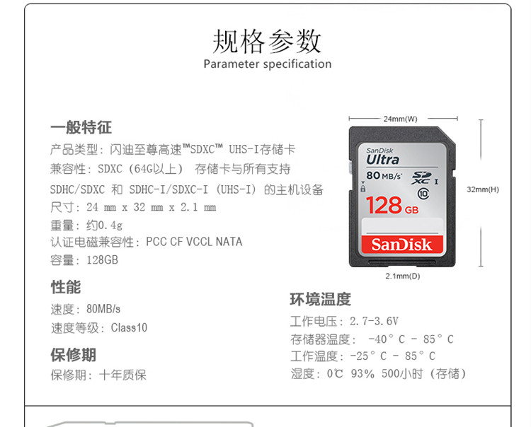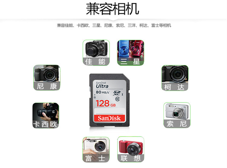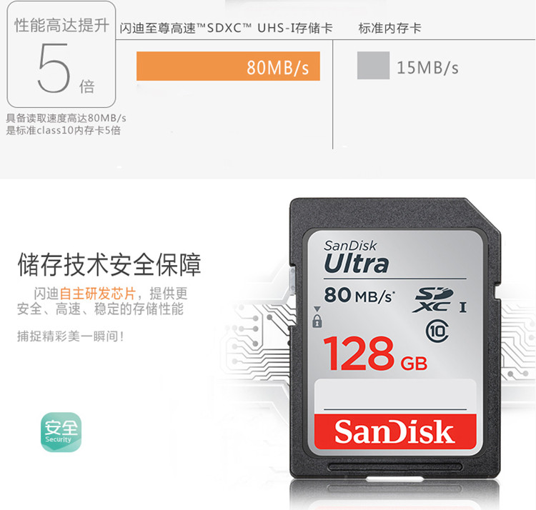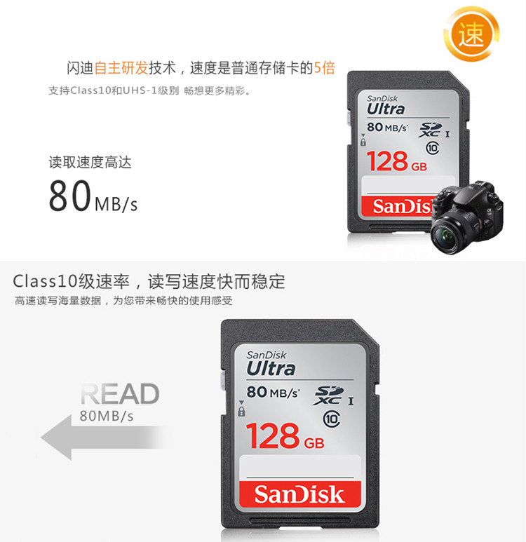 Sandisk, карта памяти, высокоскоростная камера, хранилище, 128G, 80м