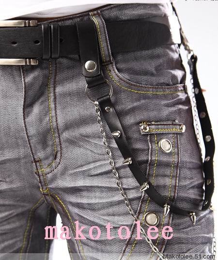 Черные кожаные штаны, джинсы, бумажник, в стиле панк, из натуральной кожи, японские и корейские, в корейском стиле