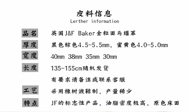 JF.J.Baker Полно -гранулярная лицевая кожаная полоса Материал ремня ручной работы JF Tea Core Bottom British Produce