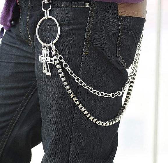 Черные штаны, металлический джинсовый аксессуар в стиле хип-хоп, в стиле панк, в корейском стиле