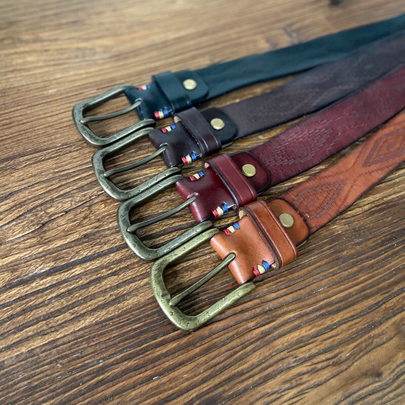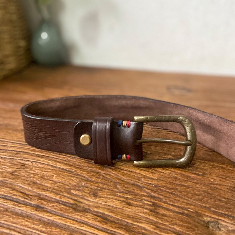 Кожаный медный ремень, ретро джинсы, штаны, из натуральной кожи