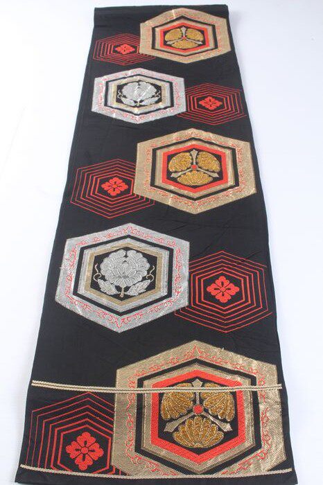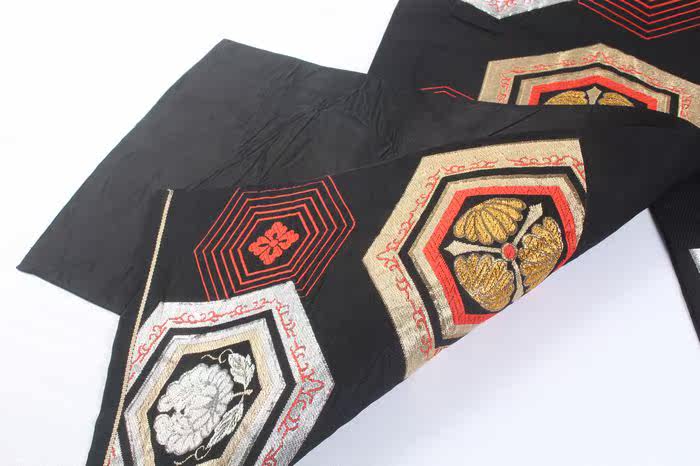 Винтажный древний ретро -ретро Японский японский кимоно -талию запечатывающий стол флаг, висящий шесть золотых и серебряных проволочных ремней A1