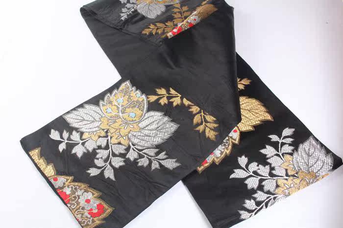 Винтажный древний ретро -ретро Японский японский кимоно -талию, герметизирующий стол, висящий шесть золотых и серебряных линий высокого пояса