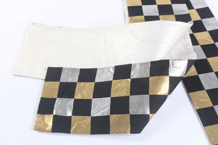 Винтажный древний ретро японский кимоно -талию запечатывающий стол флаг -шесть золотых и серебряных ниток P17 P17
