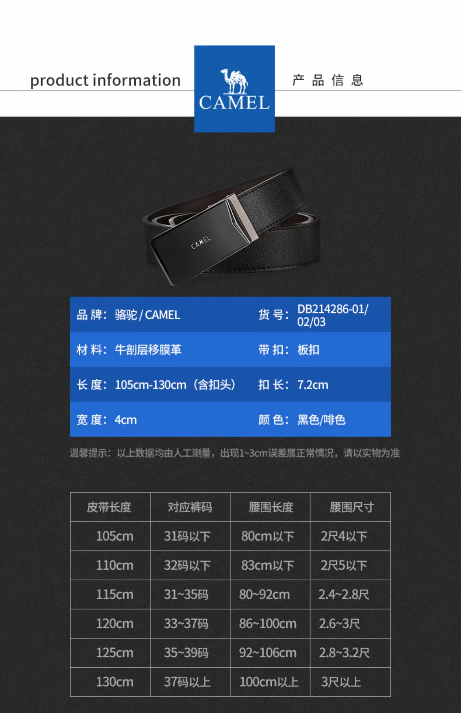 骆驼牌 Ремень, кожаные универсальные двусторонние штаны, в корейском стиле, простой и элегантный дизайн
